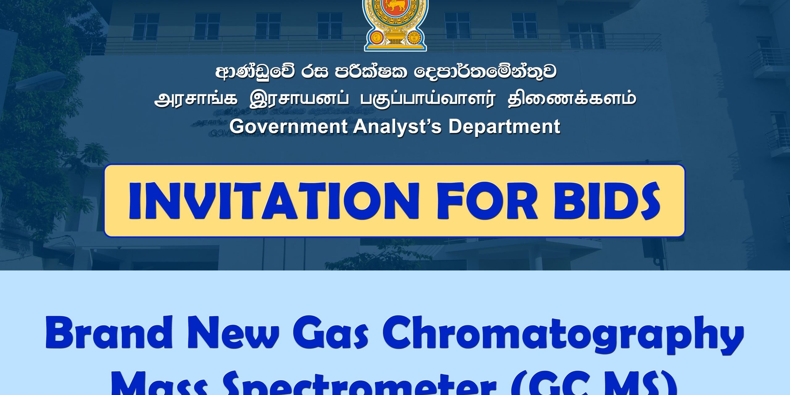 On behalf of Government Analyst’s Department, the chairman of the Procurement Committee invites sealed bids from eligible and qualified bidders for procurement of below laboratory equipment / service.