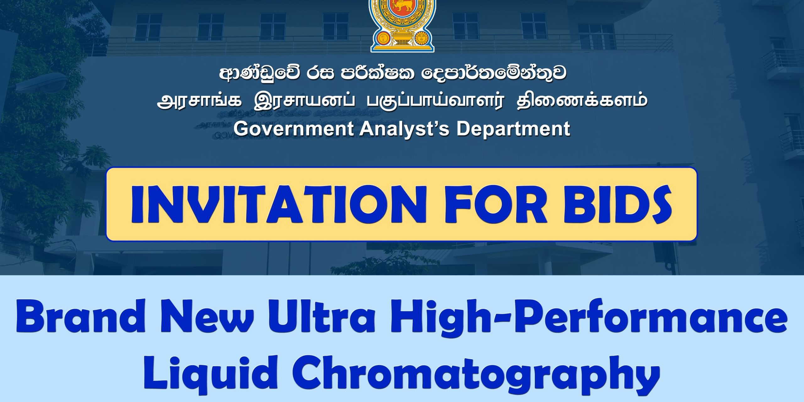 On behalf of Government Analyst’s Department, the chairman of the Procurement Committee invites sealed bids from eligible and qualified bidders for procurement of below laboratory equipment / service.